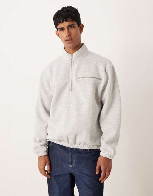ASOS DESIGN – Biała melanżowa bluza o luźnym kroju z zamkiem pod szyją