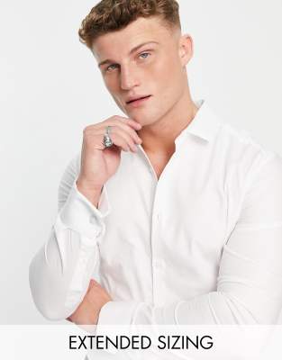ASOS DESIGN – Biała obcisła koszula oxford z podwójnymi mankietami
