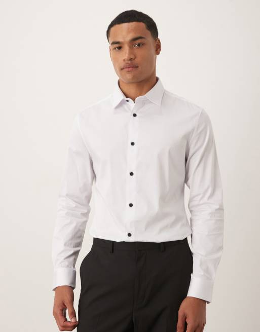 ASOS DESIGN – Biała obcisła koszula z kontrastowymi guzikami