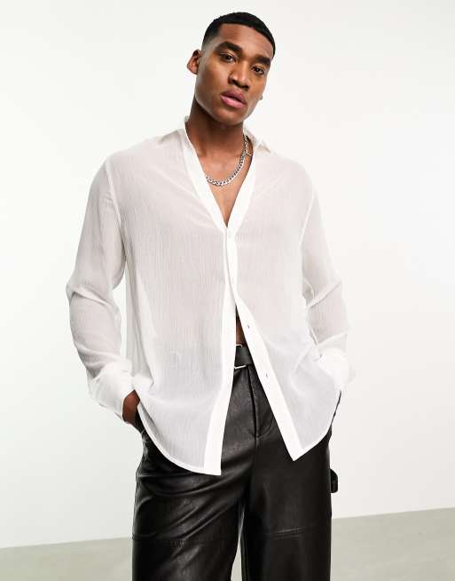 ASOS DESIGN – Biała prześwitująca koszula o luźnym kroju z głębokim kołnierzem kubańskim