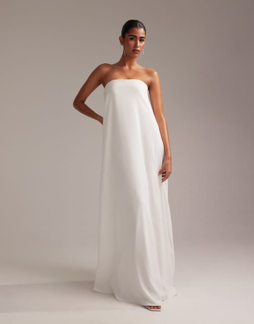 ASOS DESIGN – Biała satynowa trapezowa suknia ślubna maxi z dekoltem typu bandeau