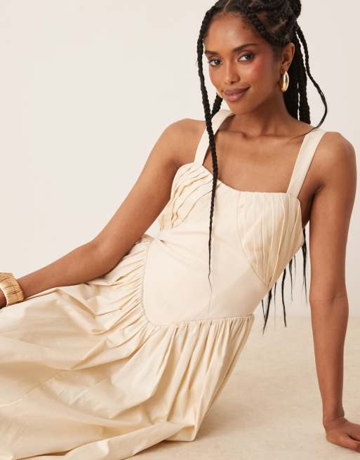 ASOS DESIGN – Biała sukienka midi z usztywnianą górą i pełną spódnicą