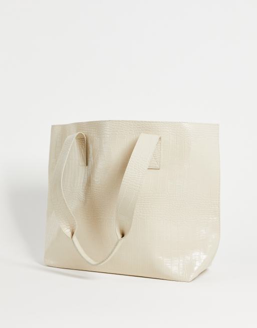 ASOS DESIGN – Biała torebka typu tote z imitacji skóry krokodyla