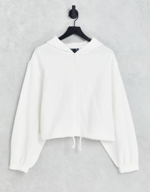ASOS DESIGN – Biała zapinana na zamek bluza z kapturem o pudełkowym kroju