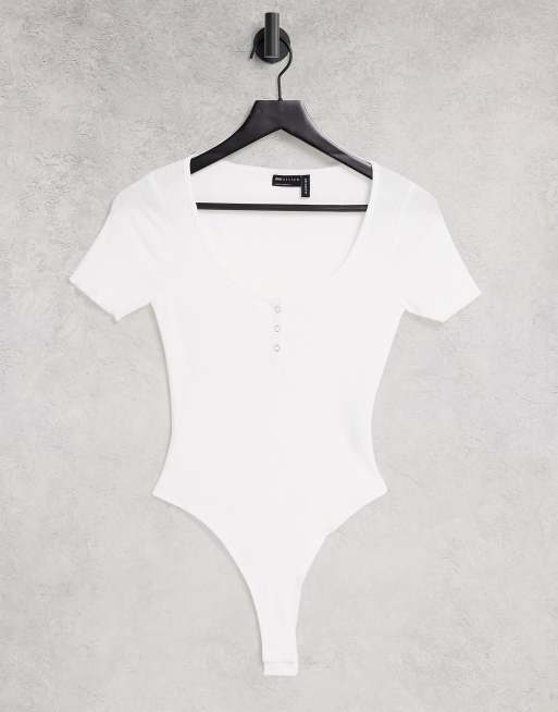 ASOS DESIGN – Białe body z krótkim rękawem i zatrzaskami z przodu