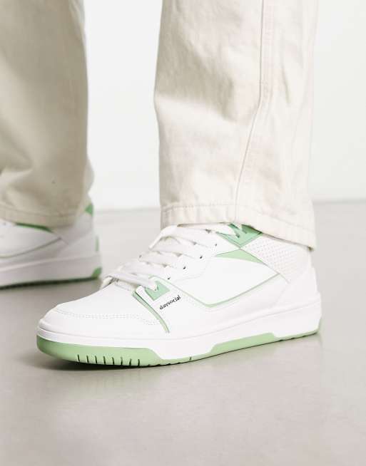 ASOS DESIGN – Białe buty sportowe w stylu retro z miętowozielonymi detalami