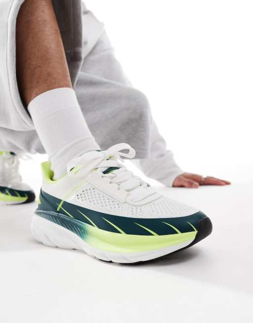 ASOS DESIGN – Białe dzianinowe buty sportowe z zielonymi wstawkami