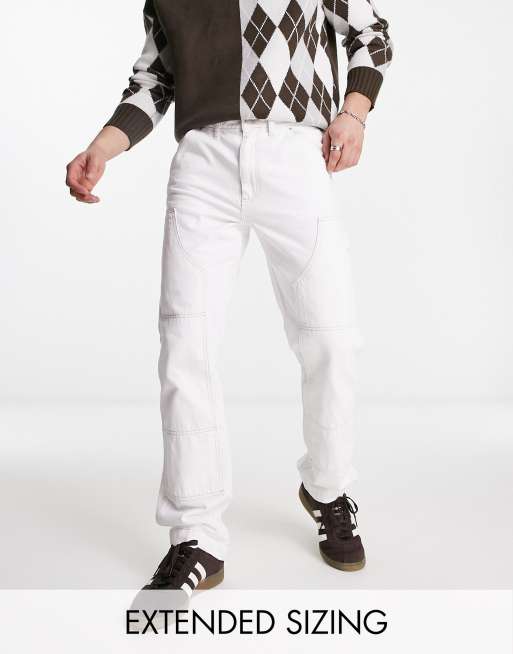 ASOS DESIGN – Białe jeansy typu carpenter z prostymi nogawkami