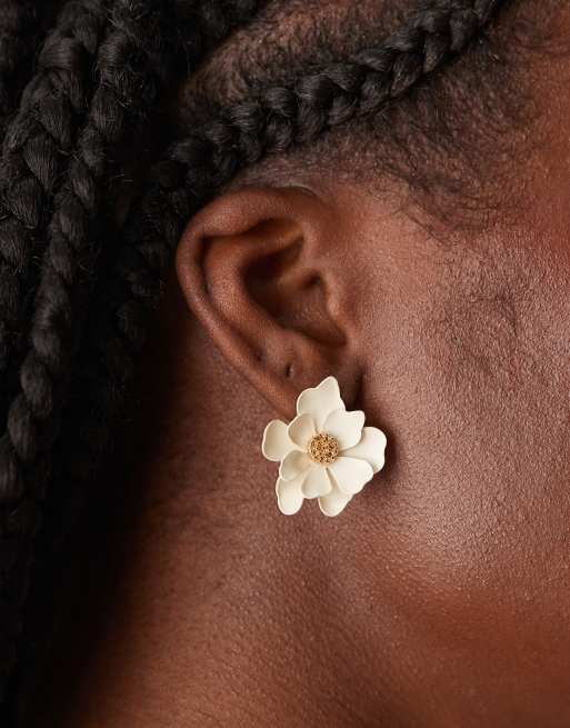 ASOS DESIGN – Białe kolczyki wkrętki z matowymi kwiatami