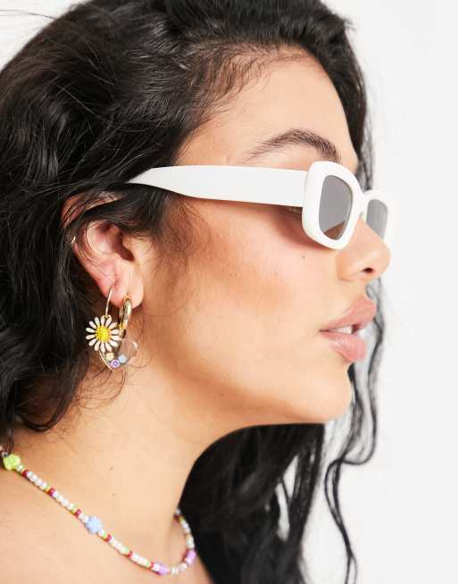 ASOS DESIGN – Białe kwadratowe okulary przeciwsłoneczne