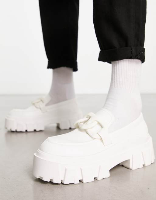 ASOS DESIGN – Białe loafersy z imitacji skóry na masywnej podeszwie z ozdobnym łańcuszkiem