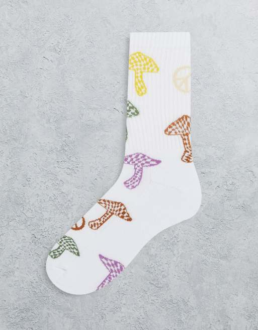ASOS DESIGN – Białe skarpetki sportowe ze wzorem w grzyby w szachownicę