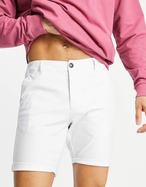 ASOS DESIGN – Białe średniej długości obcisłe szorty chinosy