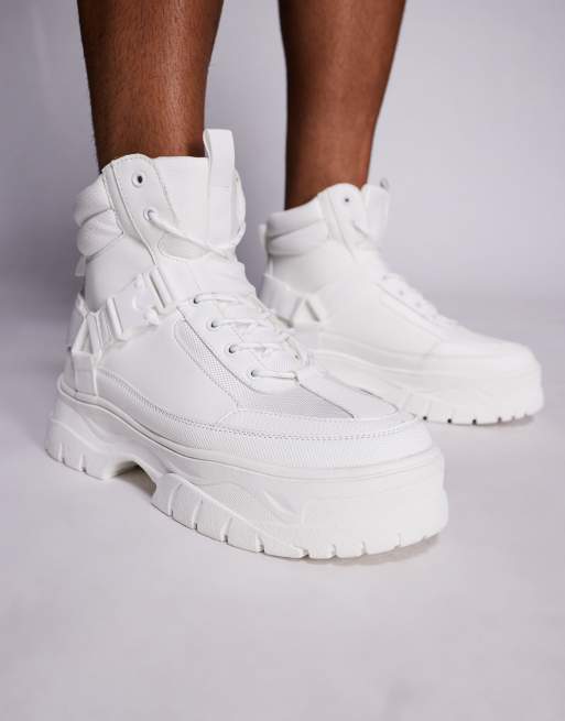ASOS DESIGN – Białe sznurowane botki w stylu worker z paskami i grubą podeszwą