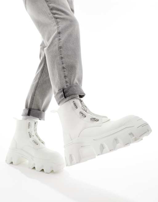ASOS DESIGN – Białe zapinane na zamek botki z imitacji skóry na grubej podeszwie
