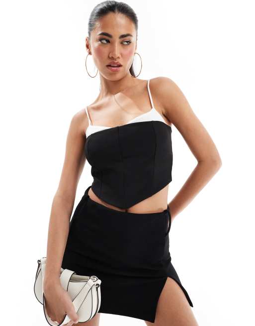 ASOS DESIGN – Biało-czarny top gorsetowy z wyeksponowaną braletką