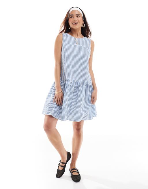 ASOS DESIGN – Biało-niebieska luźna sukienka bez rękawów w paski z warstwową spódnicą