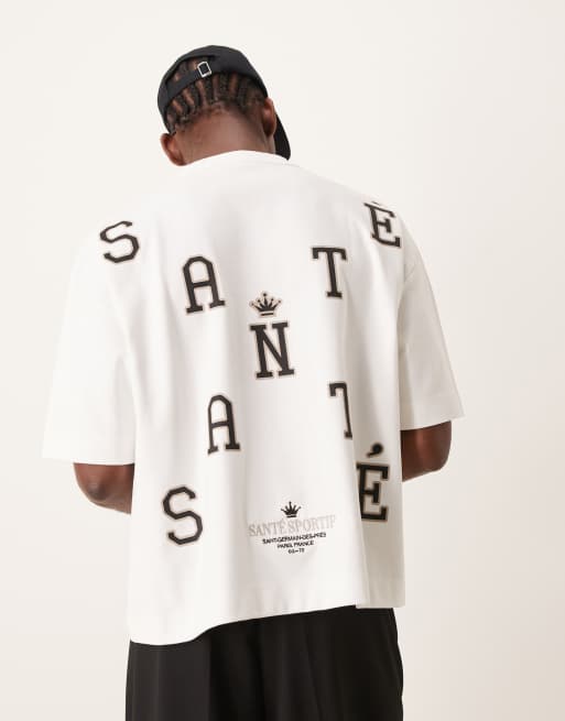 ASOS DESIGN – Biały bardzo gruby T-shirt premium o kroju pudełkowym oversize z napisem na plecach