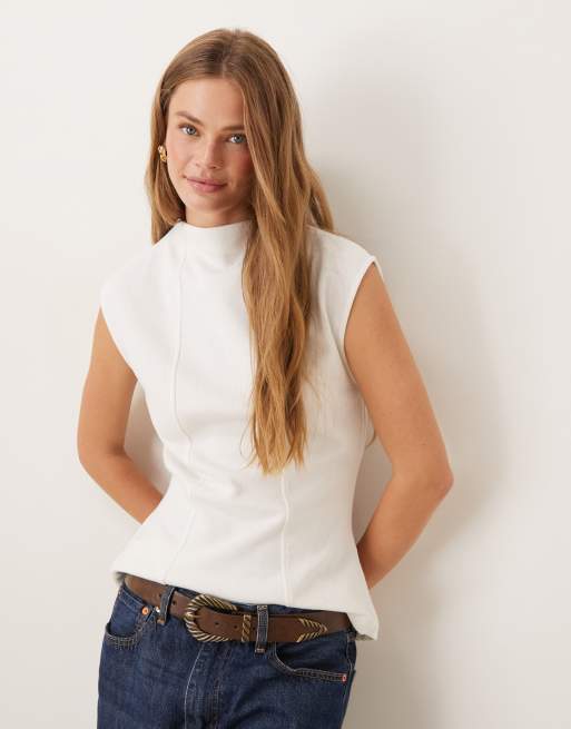 ASOS DESIGN – Biały bardzo miękki top bez rękawów z dekoltem w łódkę, baskinką i ozdobnymi szwami