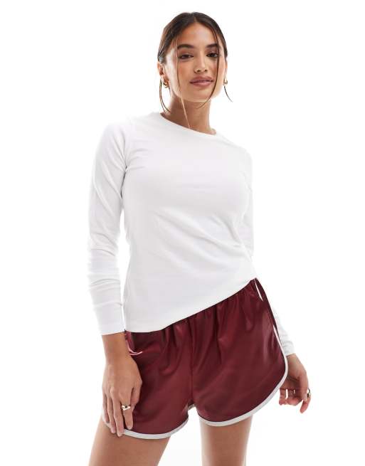 ASOS DESIGN – Biały dopasowany T-shirt bawełniany z długimi rękawami
