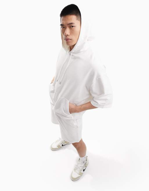 ASOS DESIGN – Biały dres: bluza oversize z kapturem i krótkimi rękawami oraz dopasowane szorty