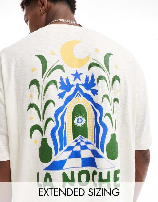 ASOS DESIGN – Biały fakturowany T-shirt oversize o gramaturze 220g/m² z nadrukiem na plecach