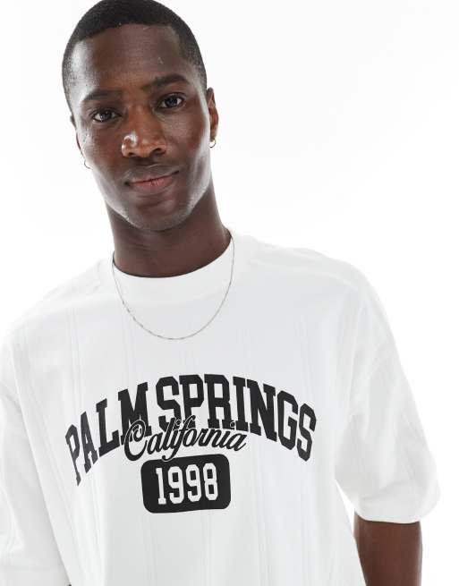 ASOS DESIGN – Biały gruby prążkowany T-shirt o pudełkowym kroju oversize z nadrukiem
