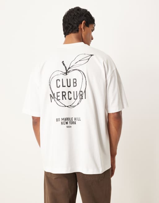ASOS DESIGN – Biały gruby T-shirt oversize z nadrukiem jabłka