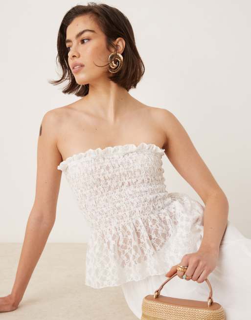 ASOS DESIGN – Biały marszczony top siateczkowy z dekoltem bandeau
