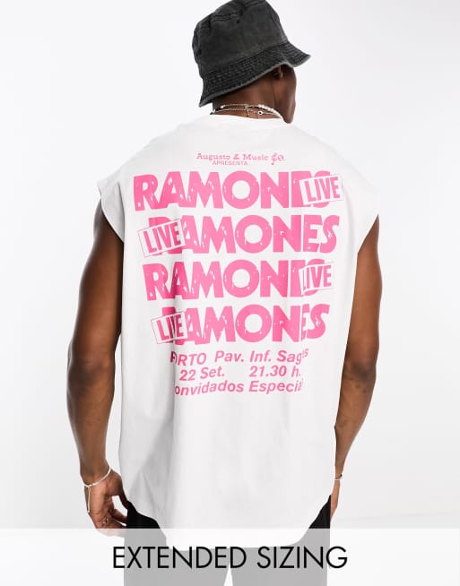 ASOS DESIGN – Biały podkoszulek oversize z nadrukami z motywem zespołu Ramones