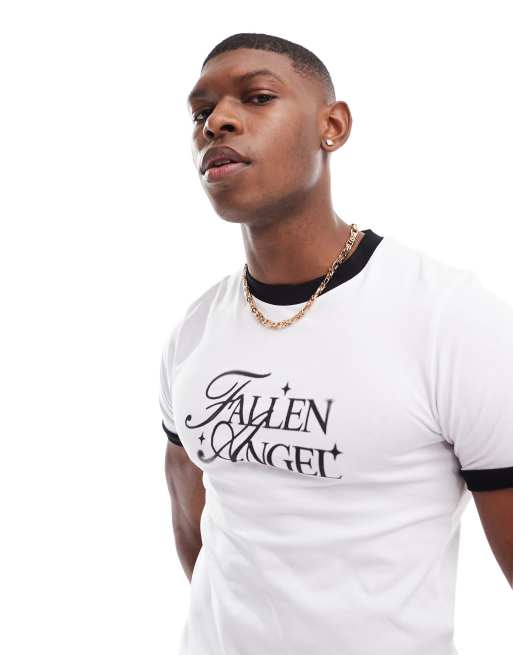 ASOS DESIGN – Biały podkreślający sylwetkę T-shirt z nadrukiem z przodu