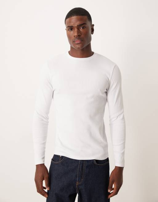 ASOS DESIGN – Biały prążkowany T-shirt o dopasowanym kroju z długimi rękawami