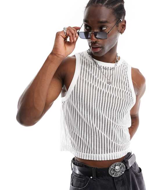 ASOS DESIGN – Biały prześwitujący prążkowany podkoszulek o skróconym podkreślającym sylwetkę kroju