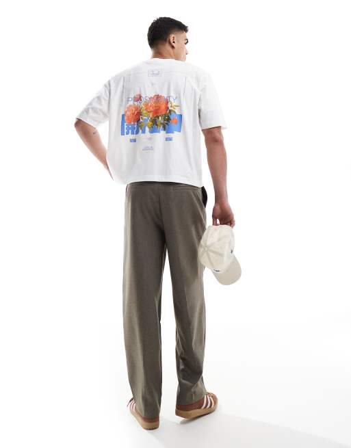 ASOS DESIGN – Biały pudełkowy T-shirt oversize z grafiką z motywem kwiatów
