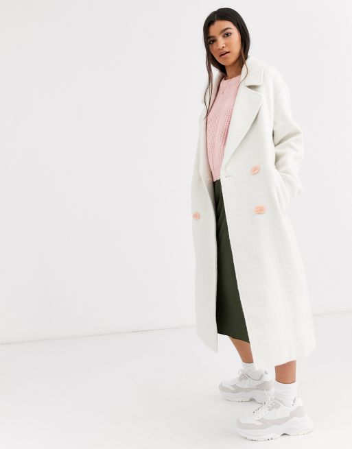 ASOS DESIGN – Biały szczotkowany płaszcz z wyrazistymi guzikami