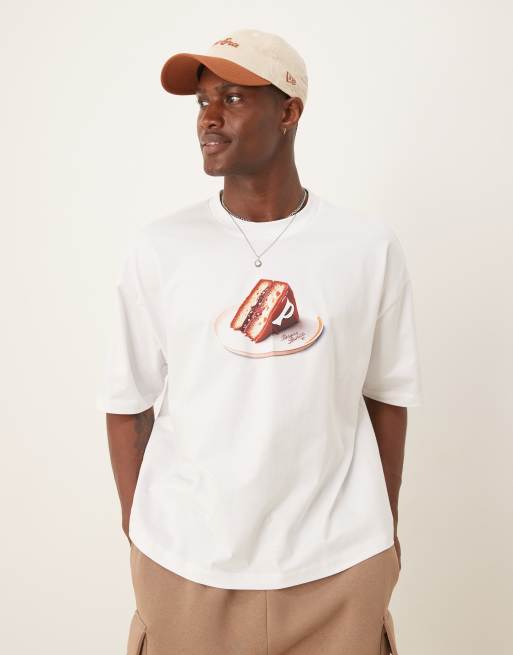 ASOS DESIGN – Biały T-shirt o pudełkowym kroju oversize z grafiką z motywem jedzenia
