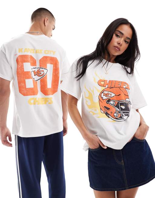 ASOS DESIGN – Biały T-shirt oversize unisex z licencjonowanym nadrukiem NFL Kansas City Chiefs
