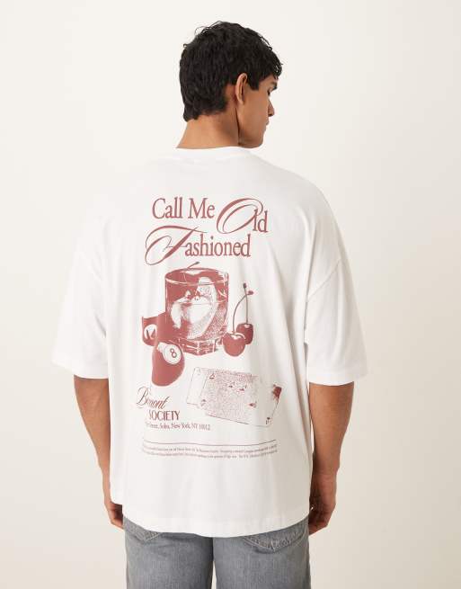 ASOS DESIGN – Biały T-shirt oversize z grafiką z napisem „Old Fashioned”