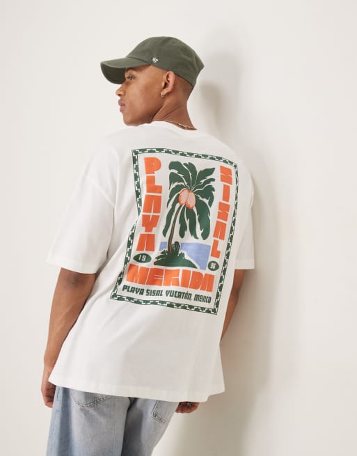 ASOS DESIGN – Biały T-shirt oversize z grafiką z palmą
