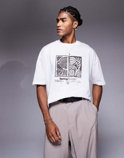 ASOS DESIGN – Biały T-shirt oversize z kwiatową grafiką