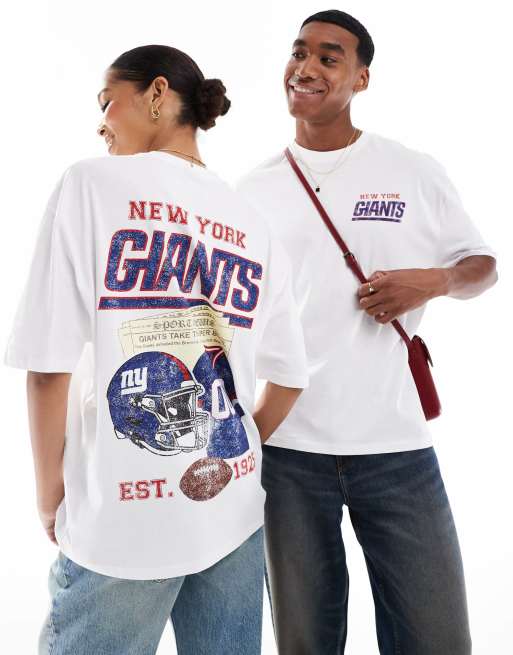 ASOS DESIGN – Biały T-shirt oversize z licencjonowanymi nadrukami z motywem NFL New York Giants