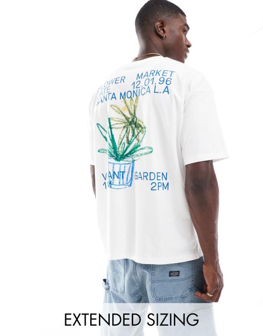 ASOS DESIGN – Biały T-shirt oversize z nadrukiem kwiatów na plecach
