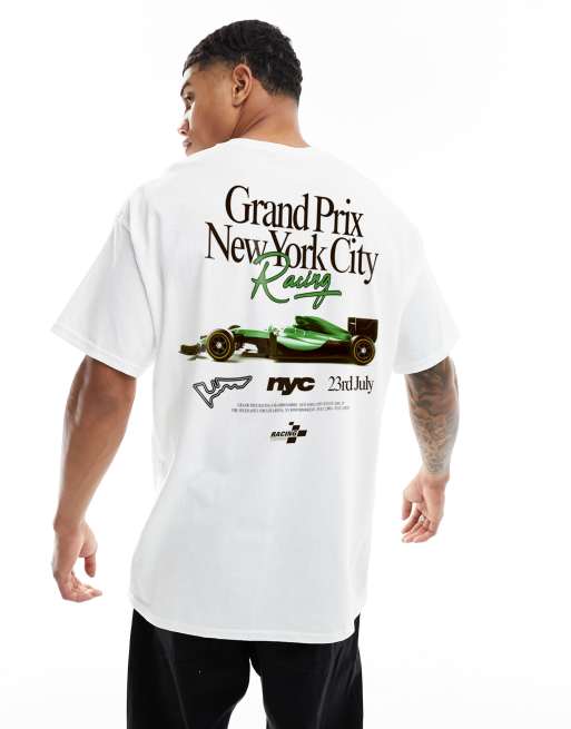 ASOS DESIGN – Biały T-shirt oversize z nadrukiem samochodu na plecach
