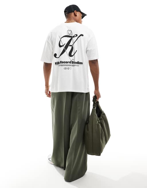 ASOS DESIGN – Biały T-shirt oversize z nadrukiem studia nagrań na plecach