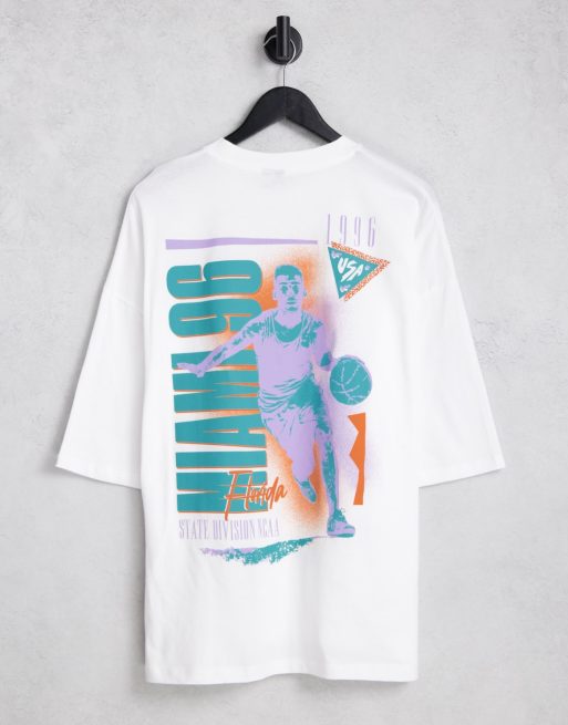 ASOS DESIGN – Biały T-shirt oversize z nadrukiem w stylu retro na plecach