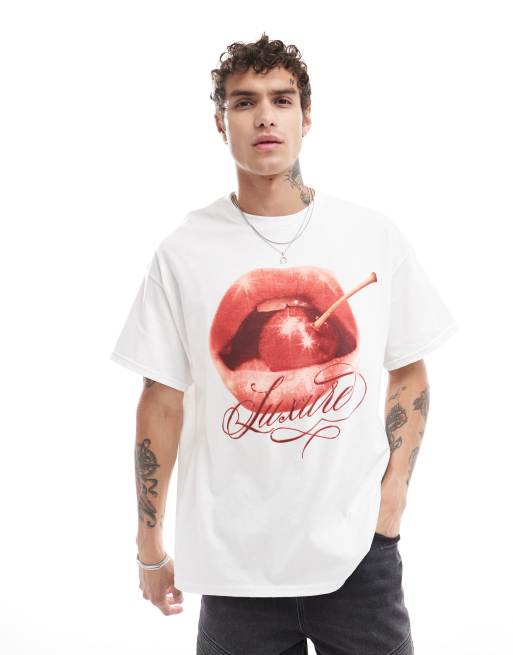 ASOS DESIGN – Biały T-shirt oversize z nadrukiem z przodu