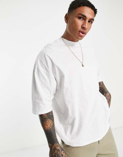 ASOS DESIGN – Biały T-shirt oversize z półgolfem