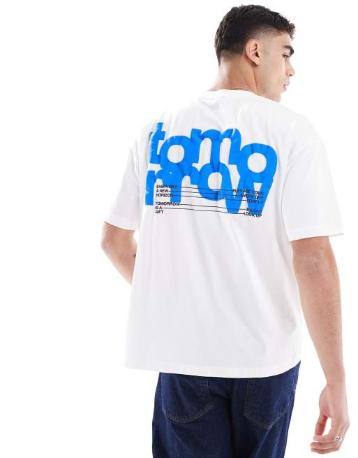 ASOS DESIGN – Biały T-shirt oversize z wypukłym nadrukiem tekstowym