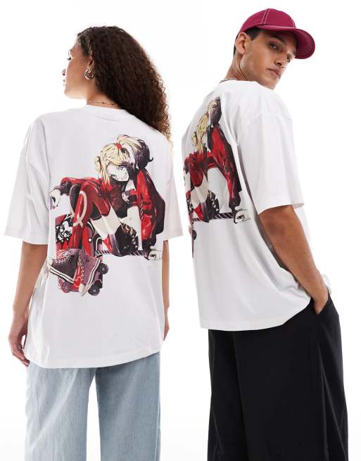 ASOS DESIGN – Biały T-shirt unisex o fasonie oversize z grafiką Harley Quinn