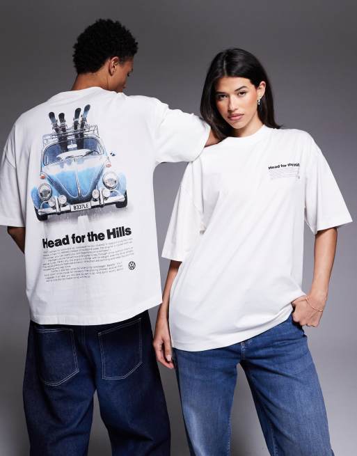 ASOS DESIGN – Biały T-shirt unisex o kroju oversize ze świątecznym nadrukiem VW